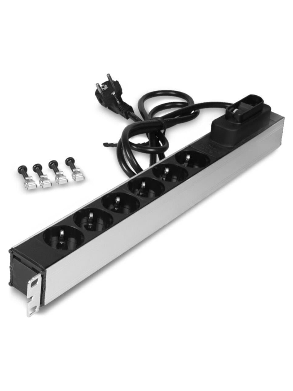 19″ 1U 6’LI SCHUKO SİGORTALI ALUMİNYUM RACK KABİN GRUP PRİZ PDU