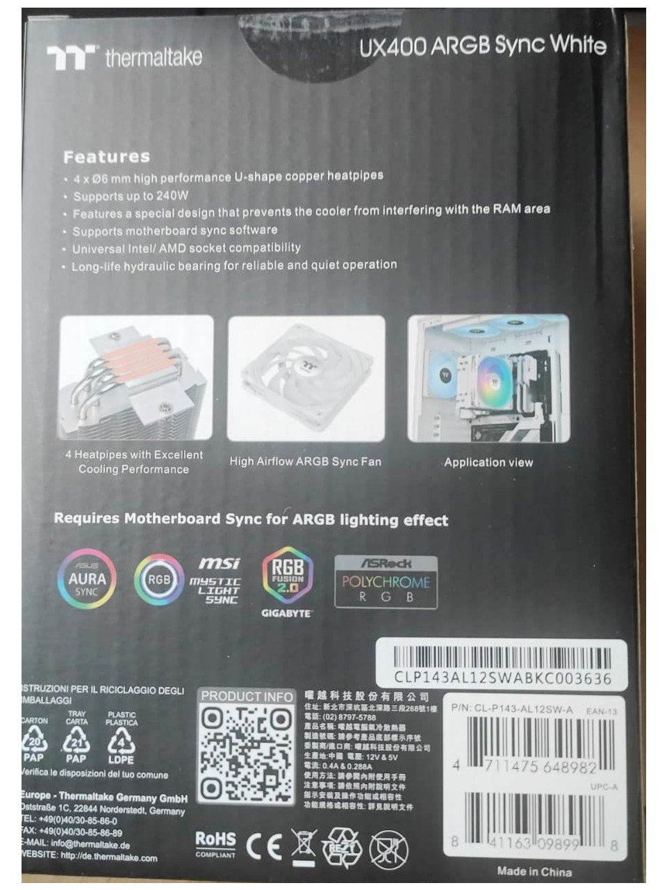 Thermaltake UX400 Argb 120MM Beyaz Kule Tipi Işlemci Soğutucu